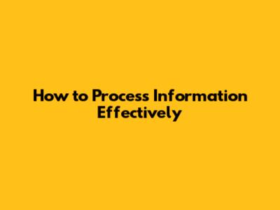 How To Process Information Effectively