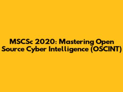 MSCSc 2020: Mastering Open Source Cyber Intelligence (OSCINT)