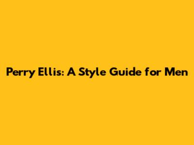 Perry Ellis: A Style Guide For Men
