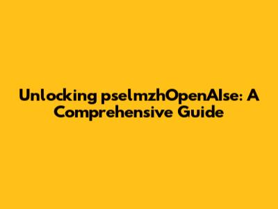 Unlocking PselmzhOpenAIse: A Comprehensive Guide
